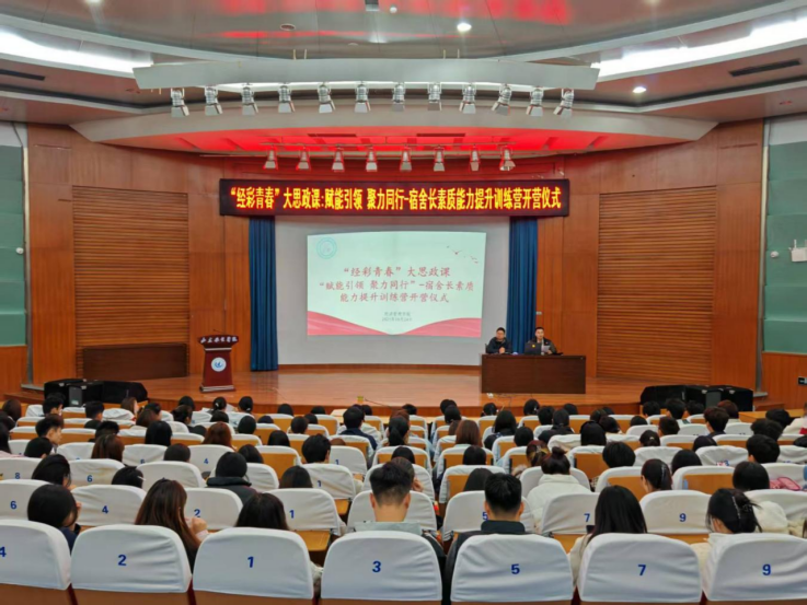 为强化宿舍长的责任意识与服务能力,切实发挥宿舍长在学生宿舍建设中的作用,10月24日,经济管理学院在明德报告厅举行“经彩青春”大思政课:“赋能引领,聚力同行”——宿舍长素质能力提升训练营开营仪式。学院学生科长王胜、辅导员王剑及2024级、2025级全体宿舍长参加了仪式。
