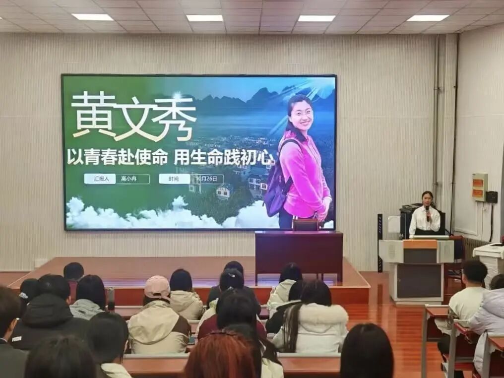宣讲团成员高小冉聚焦黄文秀的“青春选择”,讲述她放弃留京、扎根百坭村,用走访绘图打破质疑,带村民修公路、引技术、建电商站,使贫困发生率大幅下降,最终暴雨夜为防汛殉职的事迹。高小冉通过黄文秀“心中的长征”与当下乡村振兴中的青年力量,传递出“青春的价值在于奉献,人生的意义在于担当”的深刻内涵,激励在场青年要将个人理想融入国家发展大局。现场同学纷纷表示,将以向警予、黄文秀为榜样,在学习工作生活中践行“青春心向党”的誓言,用奋斗书写无愧于时代的青春篇章。