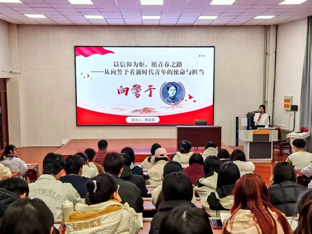 宣讲团成员韩嘉鑫讲述了中国共产党唯一的女创始人—向警予的光辉事迹,以“青春之问”开篇,通过讲述向警予坚定信仰、勇挑重担、与党同行的奋斗历程,生动诠释了革命先辈“用生命点燃信仰之火,以行动践行理想之光”的崇高精神,借翔实史实与真挚情感诠释其“以天下为己任”的担当,并结合徐枫灿、陈祥榕等当代榜样,号召同学以学习筑牢信念、以家国情怀扛使命。