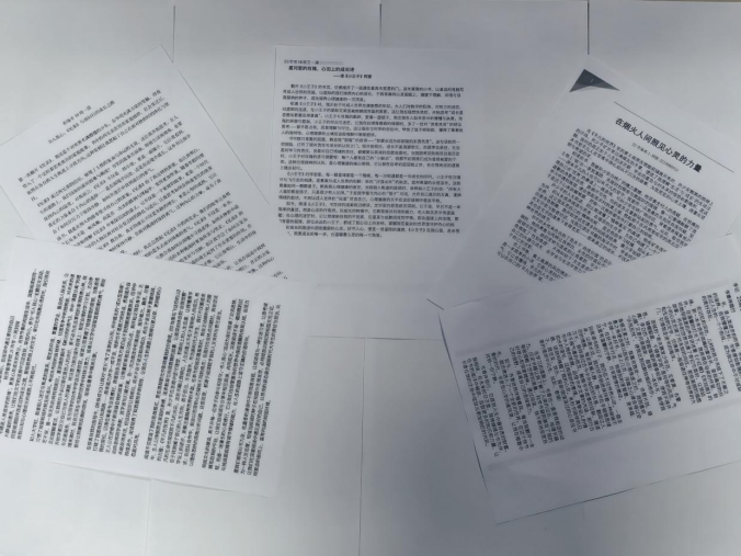 学生们以笔为媒介书写思想,在创作中完成了心灵与智育的双向滋养。有人翻出随身的阅读笔记,将书中触动自己的段落标注摘录;有人围坐交流,把生活里与书中观点共鸣的瞬间转化为创作线索;有人独自静坐,在笔尖与纸张的摩挲里,梳理内心的情绪褶皱。