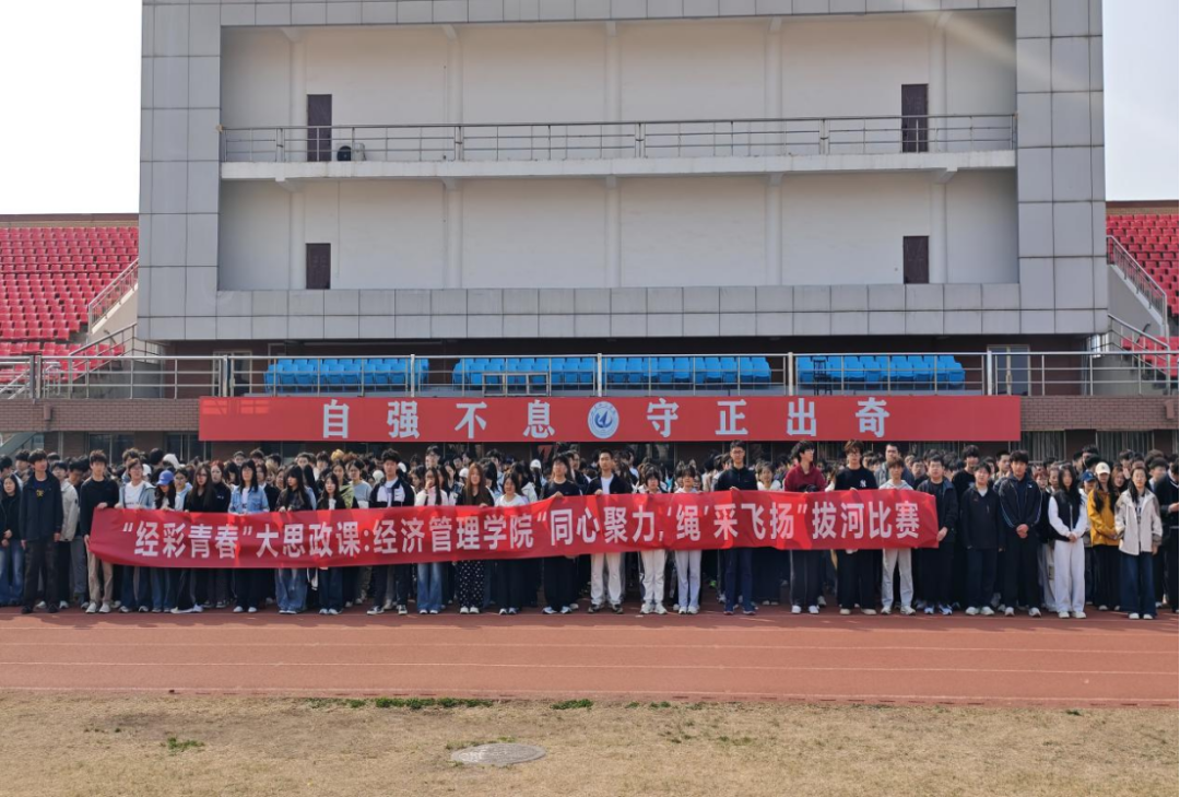 为深入落实“健康第一”教育理念,让学生走出教室、走向操场,锤炼强健体魄,增强班级凝聚力,3月21日,经济管理学院举办“同心聚力,‘绳’采飞扬”拔河比赛。学院2025级全体同学参加了本次活动。